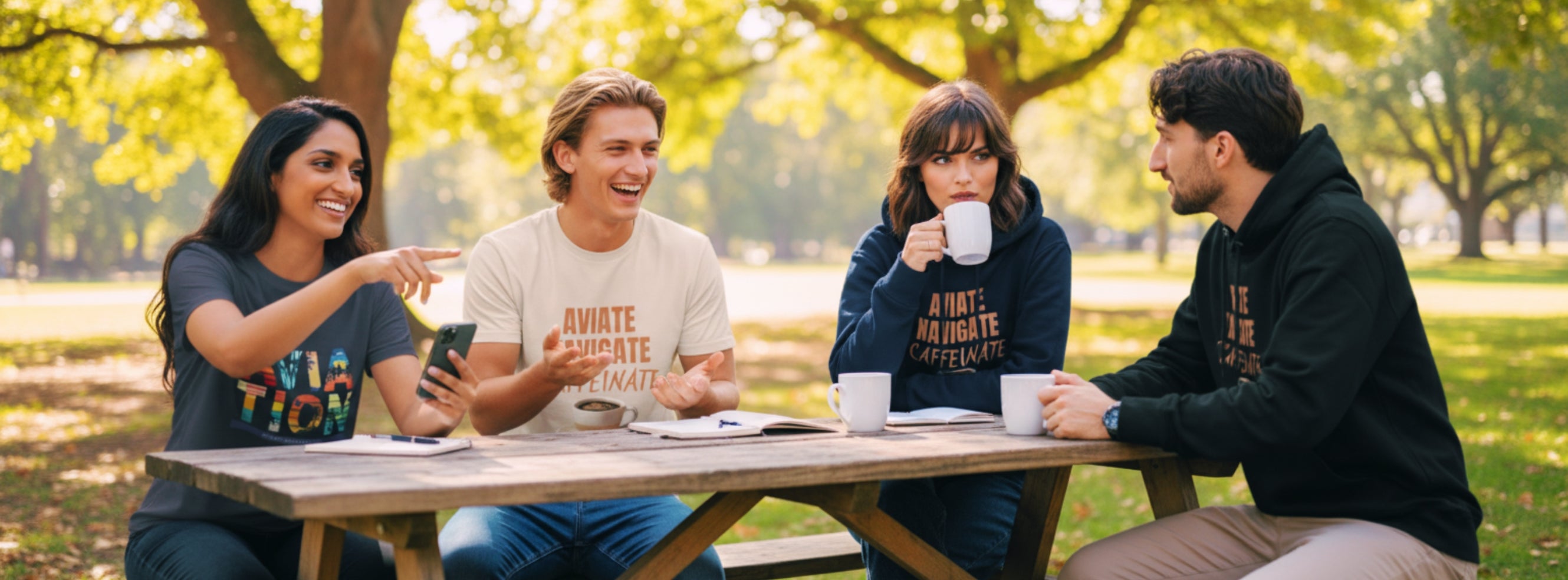 Each piece is printed or embroidered on demand — reducing waste, keeping costs fair, and giving you fresh designs.